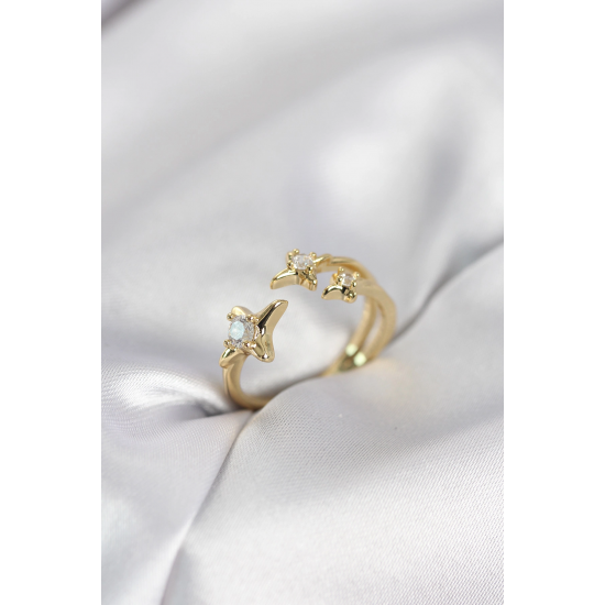 Mey İthalat® Minimal Kutup Yıldızı Model Gold Renk Kadın Yüzük