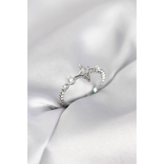 Mey İthalat® Minimal Kutup Yıldızı Model Zirkon Taşlı Gümüş Renk Kadın Yüzük