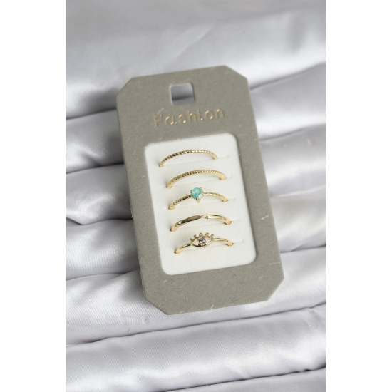 Mey İthalat® Pirinç Gold Renk 5'li Yüzük Seti