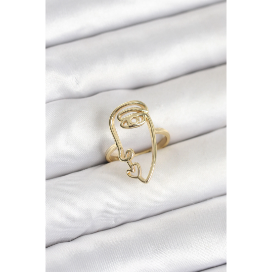 Mey İthalat® Pirinç Gold Renk Picasso Tarzı Tek Çizgi Yüz Model Kadın Yüzük