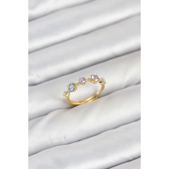 Mey İthalat® Pirinç Gold Renk Renkli Zirkon Taşlı Kadın Yüzük