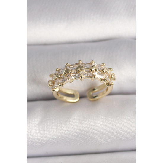Mey İthalat® Pirinç Gold Renk Zirkon Taşlı Ayarlanabilir Yüzük