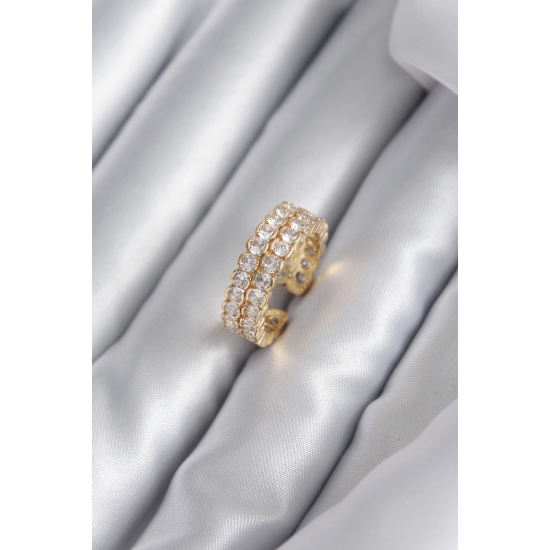 Mey İthalat® Pirinç Gold Renk Zirkon Taşlı Kadın Yüzük