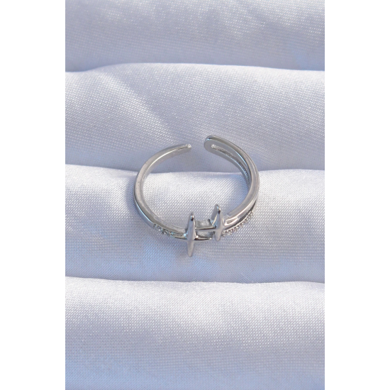 Mey İthalat® Pirinç Gümüş Renk Zirkon Taşlı 2li Görünüm Ayarlanabilir Yıldız Model Yüzük