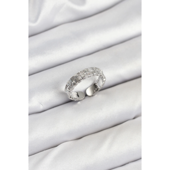 Mey İthalat® Pirinç Gümüş Renk Zirkon Taşlı Sırım Kadın Yüzük