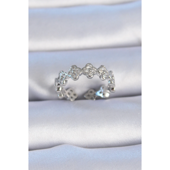 Mey İthalat® Pirinç Gümüş Renk Zirkon Taşlı Yonca Model Kadın Yüzük
