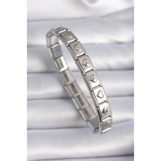 Mey İthalat® 316L Çelik Gümüş Renk Kalp İşleme Nomination Charm Bileklik