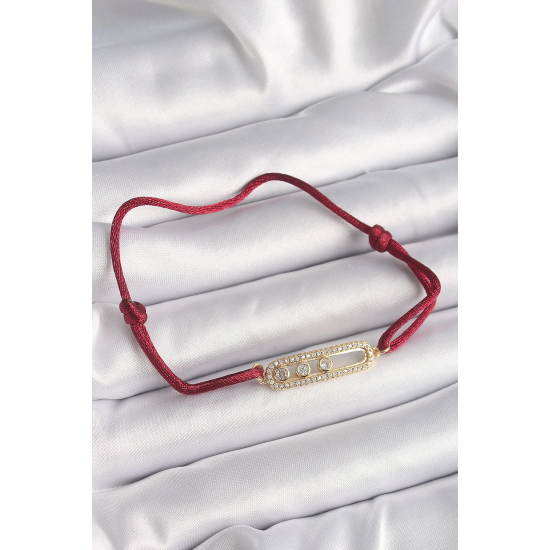 Mey İthalat® Kırmızı İpli Asansörlü Zirkon Taşlı Gold Messika Model Kadın Bileklik