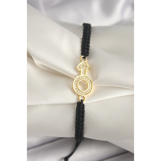 Mey İthalat® Pirinç Gold Renk Zirkon Taşlı Mars Figür Asansörlü Makrome Model Kadın Bileklik