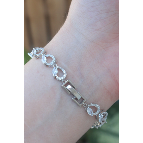 Mey İthalat® Vip Seri Pirinç Zirkon Taşlı Gümüş Renk Arpa Model Bileklik