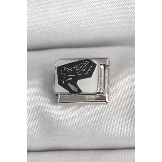 Mey İthalat® 316L Çelik Gümüş Renk Beyaz Siyah Uçak İşlemeli Portre Model Nomination Charm