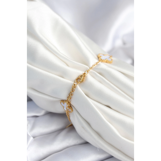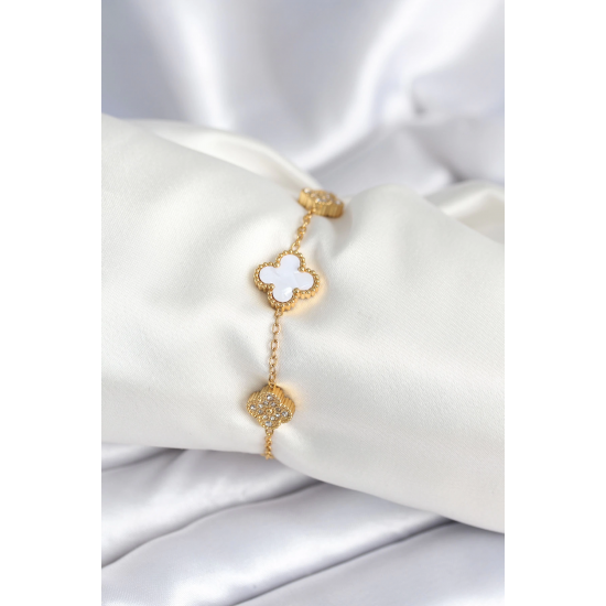 Mey İthalat® 316L Çelik Zincir Zirkon Taşlı Yonca Beyaz Kadın Bileklik