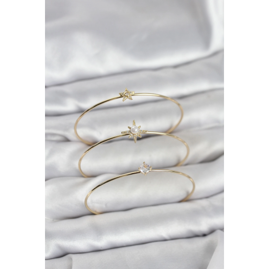 Mey İthalat® Gold Renk Kutup Yıldızı Model Zirkon Taşlı 3'lü Kadın Bileklik Kombini
