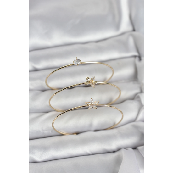 Mey İthalat® Gold Renk Zirkon Taşlı Pirinç 3'lü Kadın Bileklik Kombini
