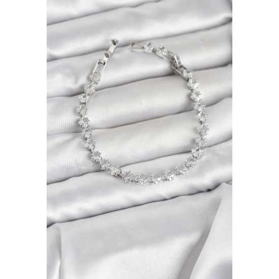 Mey İthalat® Kare Zirkon Taşlı Gümüş Renk Pirinç Su Yolu Kadın Bileklik