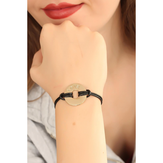 Mey İthalat® LOVE (Aşık) Siyah Deri İpli Unisex Mood Bileklik