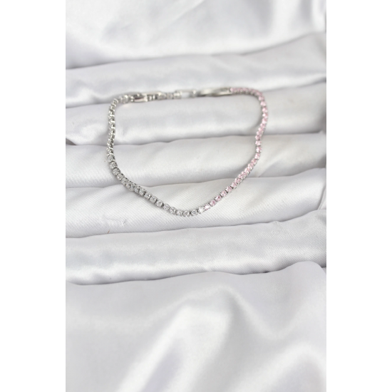 Mey İthalat® Pembe ve Beyaz Zirkon Taşlı Gümüş Renk Su Yolu Kadın Bileklik