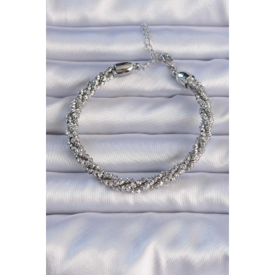 Mey İthalat® Pirinç Gümüş Renk Sarmal Model Bileklik