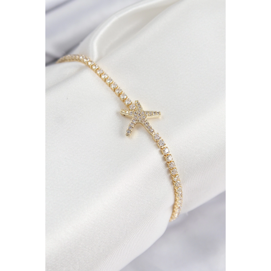 Mey İthalat® Pirinç Zirkon Taşlı Deniz Yıldızı Model Gold Renk Kadın Bileklik