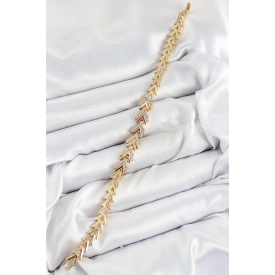 Mey İthalat® Pirinç Zirkon Taşlı Sıralı Ok Model Gold Renk Kadın Bileklik