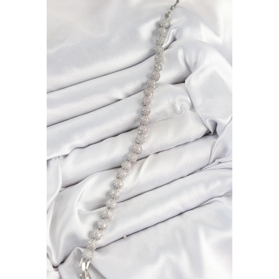 Mey İthalat® Pirinç Zirkon Taşlı Yarım Topcuk Model Gümüş Renk VIP Seri Kadın Bileklik