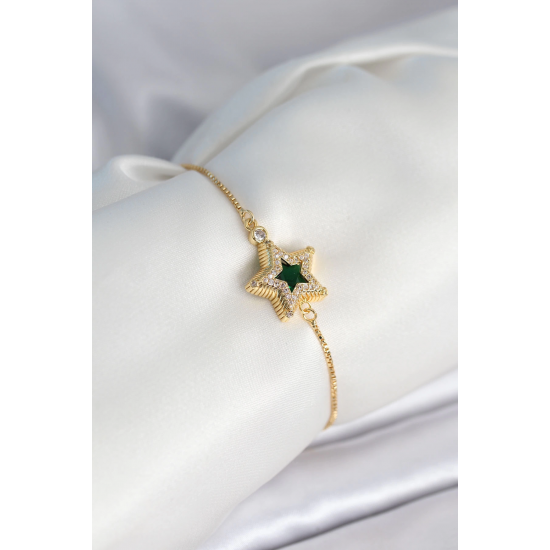 Mey İthalat® Yıldız Model Asansörlü Gold Renk Kadın Bileklik