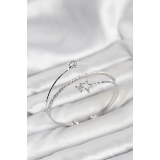 Mey İthalat® Yıldızlı Model Pirinç Gümüş Renk Kadın Bileklik