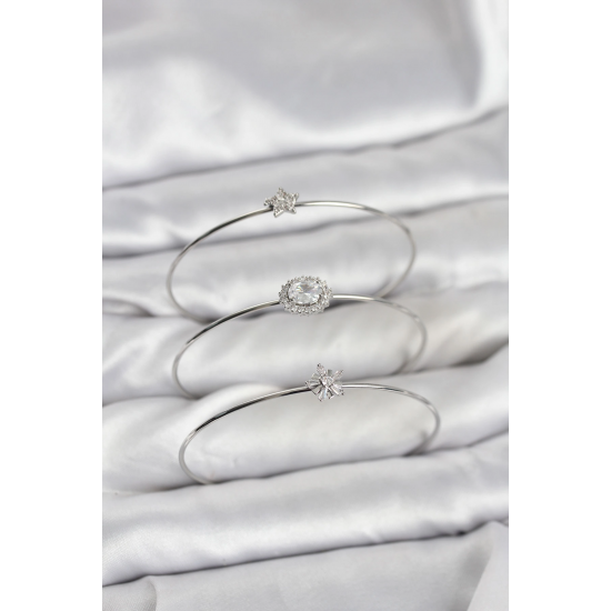 Mey İthalat® Zirkon Taşlı Gümüş Renk Tek Taş Model 3'lü Kadın Bileklik Kombini
