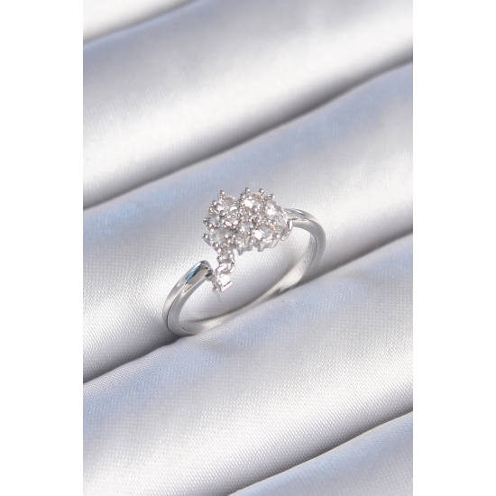 Mey İthalat® Pirinç Gümüş Renk Zirkon Taşlı Kadın Yüzük