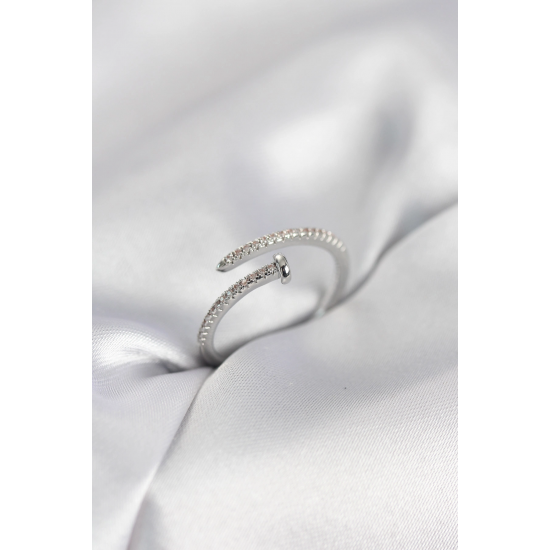 Mey İthalat® Çivi Model Zirkon Taşlı Gümüş Renk Kadın Yüzük