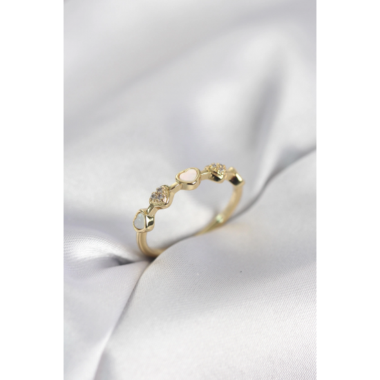 Mey İthalat® Gold Renk Minimal Kalp Model Zirkon Taşlı Pirinç Kadın Yüzük