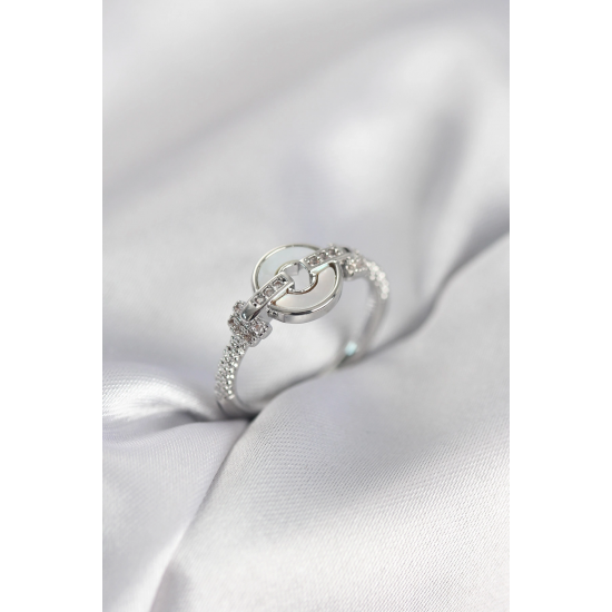 Mey İthalat® Gümüş Renk Daire Form Sedef ve Zirkon Taşlı Kadın Yüzük