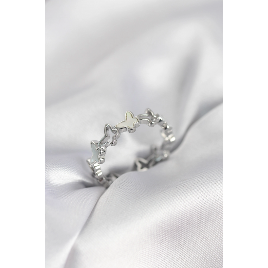 Mey İthalat® Gümüş Renk Kelebek Model Pirinç Kadın Yüzük