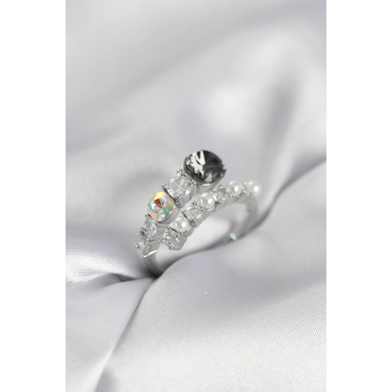 Mey İthalat® Gümüş Renk Pirinç Zirkon Taşlı İncili Kadın Yüzük