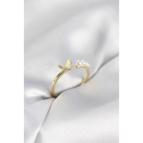 Mey İthalat® İncili Kelebek Model Gold Renk Pirinç Kadın Yüzük