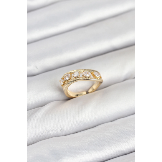 Mey İthalat® Pirinç Gold Renk Zirkon Taşlı Kadın Yüzük