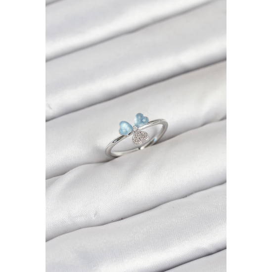 Mey İthalat® Pirinç Gümüş Renk Yonca Model Kadın Yüzük