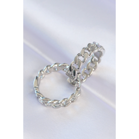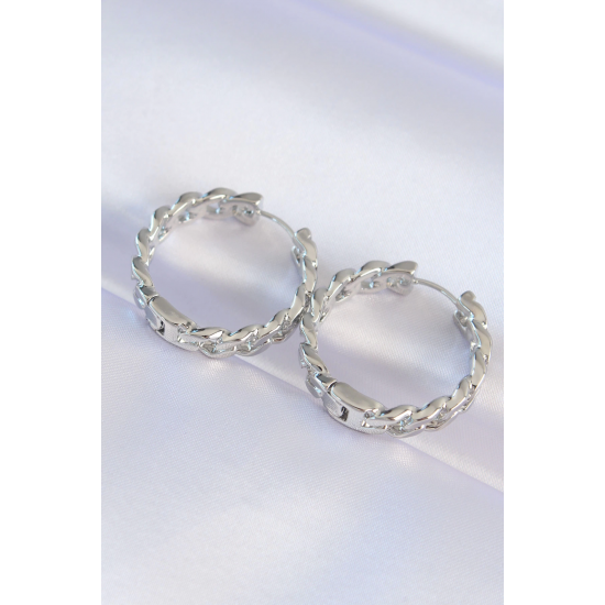Mey İthalat® Pirinç Gümüş Renk Zincir Model Halka Küpe