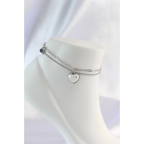 Mey İthalat® 316L Çelik Gümüş Renk Beyaz Kalpli 2li Halhal