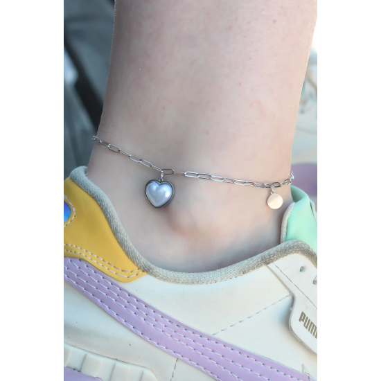 Mey İthalat® 316L Çelik Gümüş Renk Kalp Model Kadın Halhal