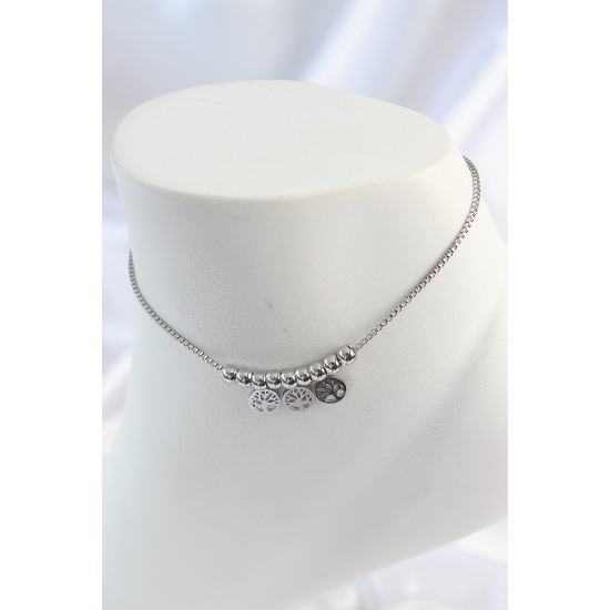 Mey İthalat® 316L Çelik Gümüş Renk Yaşam Ağacı Model Kadın Halhal