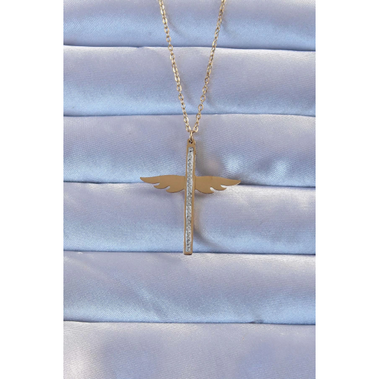 Mey İthalat® 316L Çelik Altın Renk Zirkon Taşlı Mikail Kolye