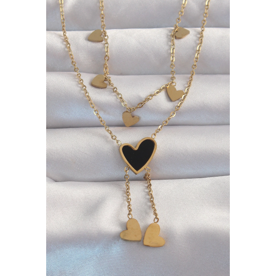 Mey İthalat® 316L Çelik Gold Renk Mineli Çoklu Kalp Kolye