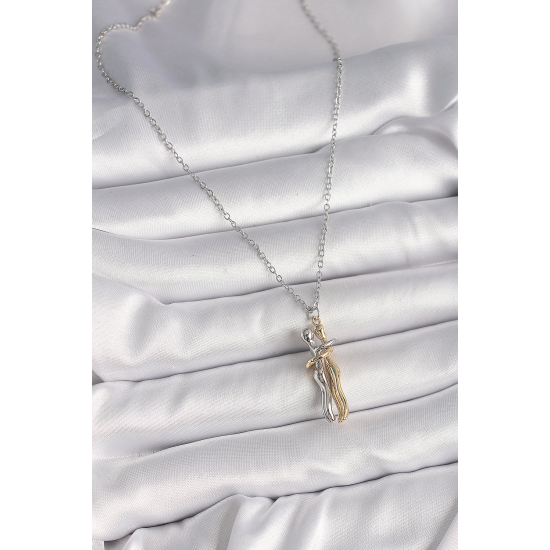 Mey İthalat® 316L Çelik Gümüş Renk Zincir Sarılma Model Kadın Kolye