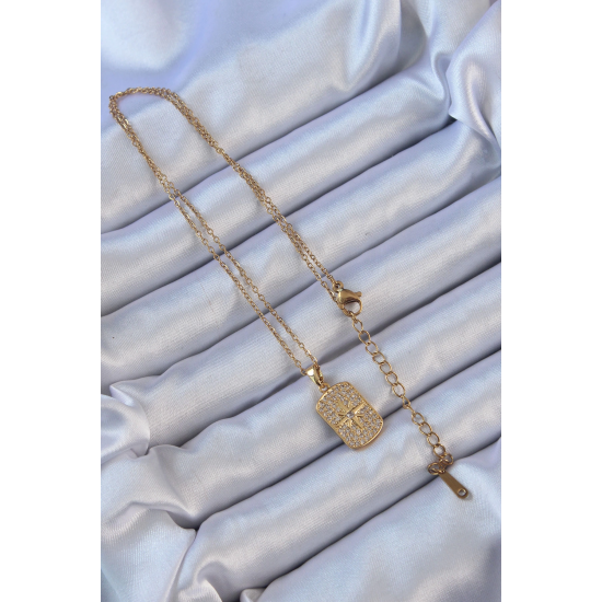 Mey İthalat® 316L Çelik Zincir Altın Renk Zirkon Taşlı Kutup Yıldızlı Vintage Kolye
