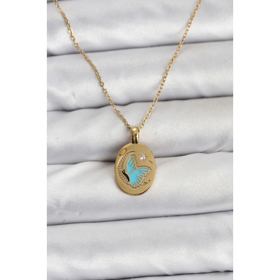 Mey İthalat® 316L Çelik Zincir Gold Renk Kelebek Figür Kadın Kolye