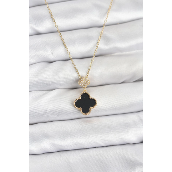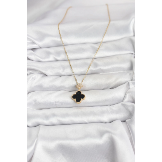 Mey İthalat® 316L Çelik Zincir Gold Renk Yonca Model Zirkon Taşlı Kadın Kolye