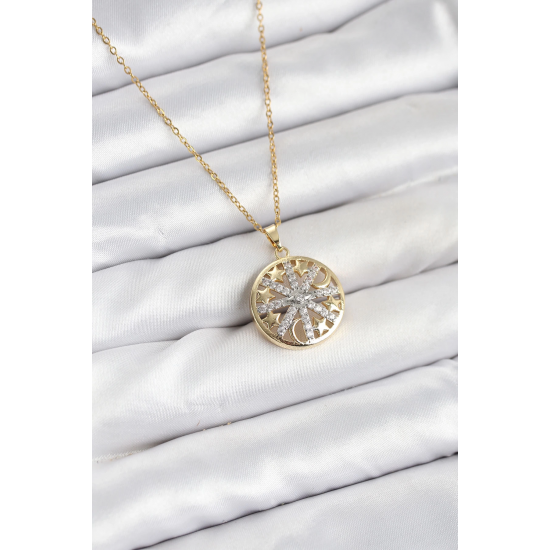 Mey İthalat® 316L Çelik Zincir Gold Renk Zirkon Taşlı Kadın Kolye