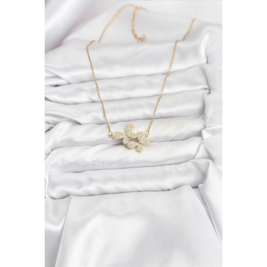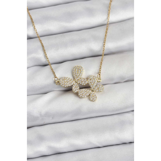Mey İthalat® 316L Çelik Zincir Gold Renk Zirkon Taşlı Kelebek Model Kadın Kolye