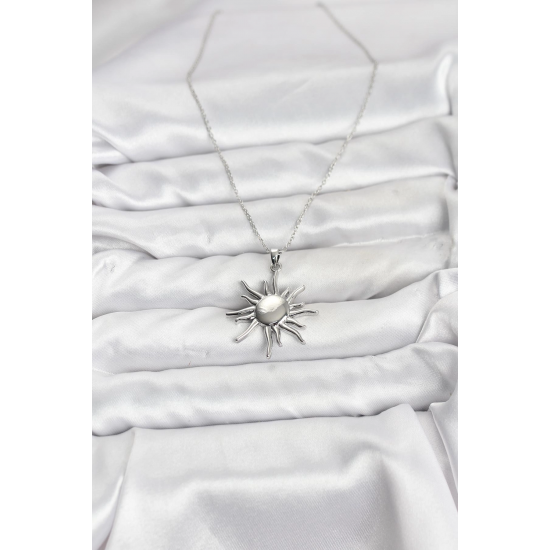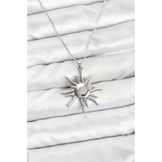 Mey İthalat® 316L Çelik Zincir Gümüş Renk Güneş Model Kadın Kolye
